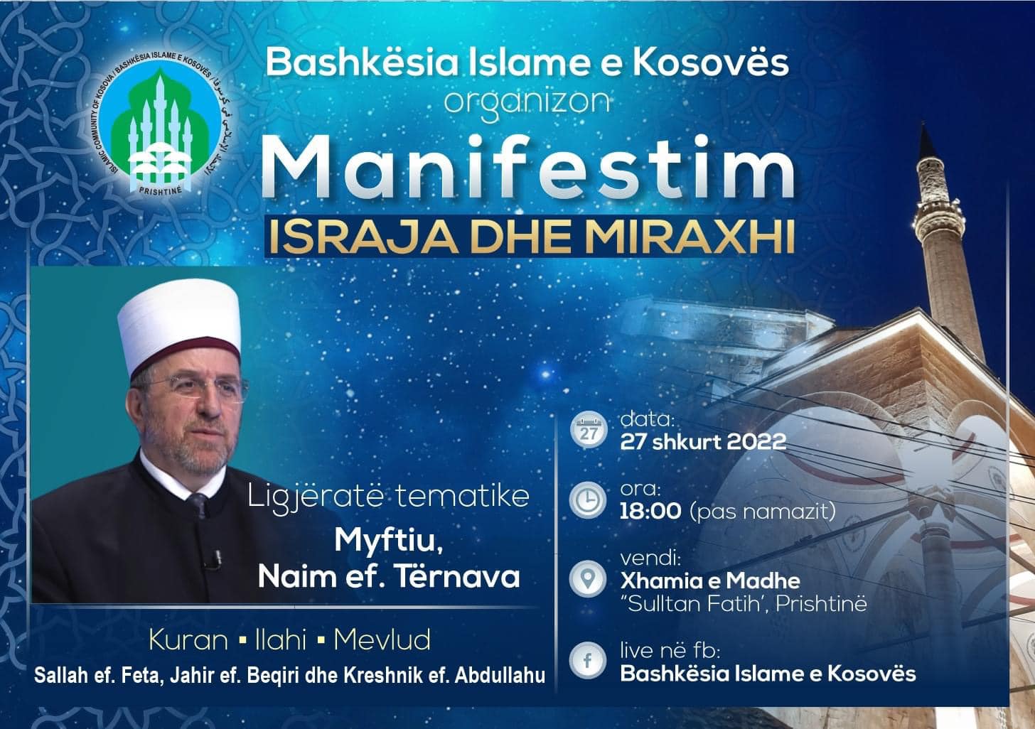Shënohet Nata e Madhe e Israsë dhe Miraxhit në gjithë Kosovën 28/02/2022 Share this: Click to share on Facebook (Opens in new window) Facebook Click to share on X (Opens in new window) X