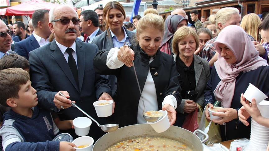 Në Çarshinë e vjetër të Shkupit, me rastin e muajit Muharrem, sot u bë shpërndarja e ashures për qytetarët, raporton Anadolu Agency (AA).