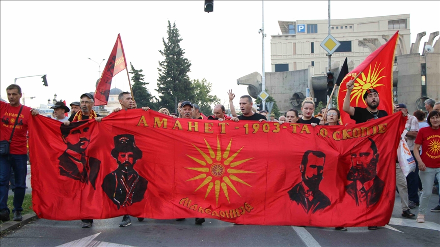 Para qeverisë së Maqedonisë së Veriut në Shkup është mbajtur protestë kombëtare kundër propozimit francez për heqjen e vetos bullgare dhe për fillimin e negociatave të vendit me Bashkimin Evropian (BE), raporton Anadolu Agency (AA).