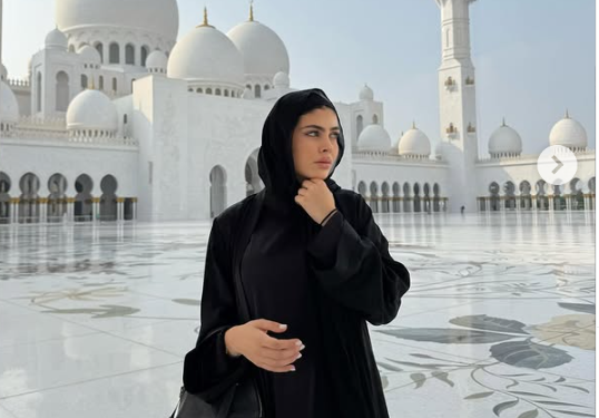 Nga Abu Dhabi, në oborrin e një xhamie të famshme, ajo përcjell ndjesinë e saj të re të një raporti të ri me Krijuesin: