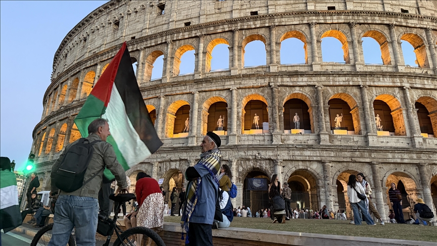 Në kryeqytetin Romë, turma u mblodh para Koloseut ikonik përpara se të marshonin drejt lagjes Piramide, duke brohoritur slogane si “Liri për Palestinën”, “Ndaloni gjenocidin” dhe “Nga lumi në det, Palestina e lirë”. Ata valëvitnin flamuj palestinezë dhe mbanin pishtarë.