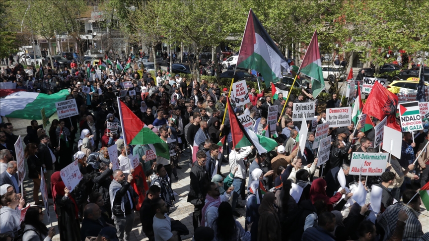 Në Shqipëri është mbajtur një tubim në mbështetje të Palestinës dhe popullit palestinez, duke u dënuar sulmet dhe masakrat e Izraelit ndaj palestinezëve, gjithashtu duke u kundërshtuar dhe dënuar edhe takimet e zyrtarëve shqiptarë me zyrtarët izraelitë, raporton Anadolu.