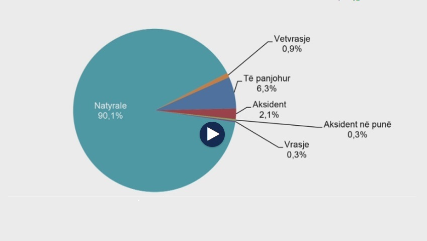 90 përqind e vdekjeve në Shqipëri shkaktohen nga shkaqe natyrore. Në total në vitin 2017, kanë ndëruar jete 22.232 shqiptarë. Ky numër është më i lartë se lindjet.