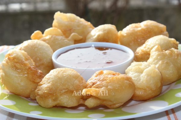 Në një tas porcelani vendosen vezë, kos, kripë dhe yndyrë, rrihen mirë dhe shtohet miell i përzier me pak sodë. Brumi në këtë rast është gjysmë i trashë. Në tigan hidhet pak yndyrë (1/2 lugë gjelle). Kur yndyra të jetë nxehur, hidhet brumi (një lugë gjelle për çdo petull). Largësia nga njëra tjetra duhet të jetë 3-4 cm sepse gjatë skuqjes brumi hapet. Petullat skuqen nga njëra anë dhe pastaj kthehen nga ana tjetër.