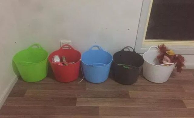 Nëse mamaja gjen qoftë edhe një lodër të hedhur në tokë, atë e merr dhe e vendos në njërën nga pesë kovat. Nëse deri në fund të ditës lodra në fjalë vazhdon të qëndrojë në kovë sepse nuk është vendosur në vend nga fëmija, mamaja e merr dhe e hedh në plehra.