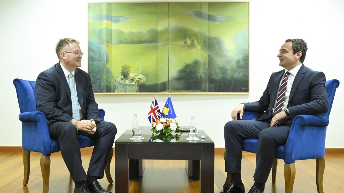Kryeministri i Republikës së Kosovës, Albin Kurti, pas telefonatës me Sekretarin e Punëve të Jashtme të Mbretërisë së Bashkuar, James Cleverly, mbrëmë takoi ambasadorin e Mbretërisë së Bashkuar në Kosovë, Nicholas Abbott.