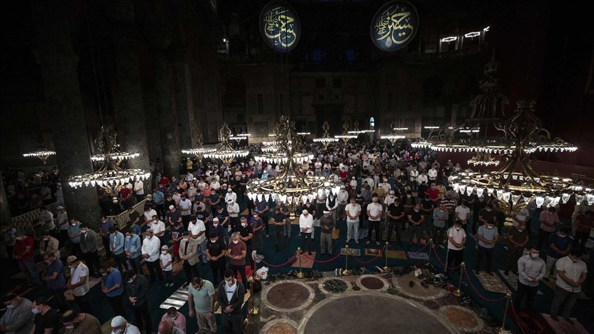 Shumë muslimanë nga të gjitha pjesët e Turqisë, por edhe vendeve të tjera, pas thirrjes së ezanit, të cilët natën e kaluan në sheshin para xhamisë, nxituan për të falur namazin e sabahut në Ajasofja.