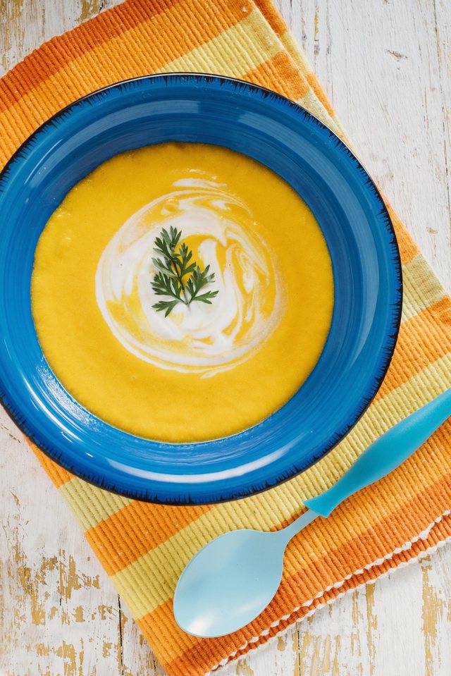 Përgatitja: Në një tenxhere me pak vaj ulliri, skuqim qepën të grirë imët bashkë me hudhrën dhe xhenxhefilin. Shtojmë karotat të prera në kubikë të vegjël, qimnonin dhe shafranin. I përziejmë me lugë druri dhe i lëmë në zjarr që të marrin aromat e njëra-tjetrës për 1 minutë. Shtojmë lëngun e perimeve të valuar dhe vazhdojmë zierjen e tyre me flakë të mesme, gati të ulët (për 30 minuta ose derisa të shohim që karotat janë zbutur), me kapakun përgjysmë që të mos derdhet. E heqim nga zjarri, grijmë me blender të gjithë masën dhe shtojmë qumështin e kokosit dhe lëng të valuar nëse ka nevojë. E shërbejmë të vakët, me majdanoz të grirë sipër.