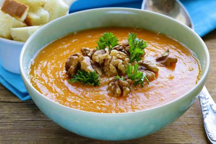 E lehtë në shije dhe me një aromë të mrekullueshme që të tërheq menjëherë drejt tryezës është supa e pulës me arra dhe hudhra.