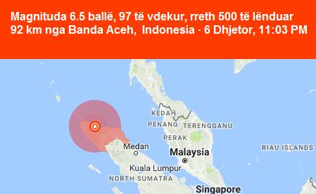 Dhjetëra ndërtesa janë shembur si pasojë e tërmetit me fuqi prej 6.5 ballë sipas Rihterit që goditi pjesën veriore të ishullit Sumatra, në thellësi prej rreth 10 kilometrave.