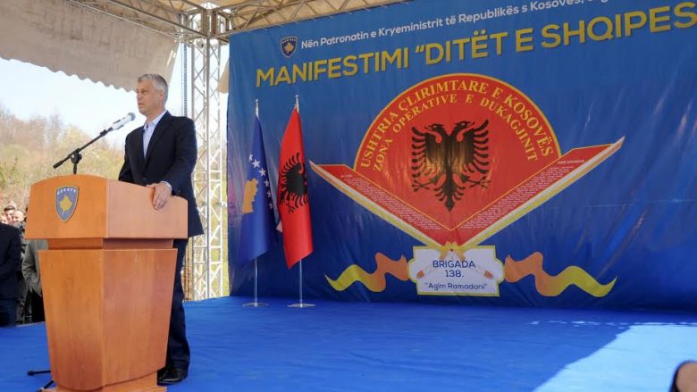 “Sot dhe përgjithmonë do t’i përkujtojmë me respekt të thellë dhe përulje komandantët dhe ushtarët e tyre, Agim Ramadanin, Sali Çekun, Xhemajl Fetahun dhe qindra dëshmorë që ranë për lirinë e Kosovës”, tha presidenti Thaçi.