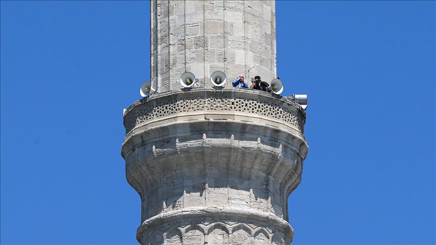 Xhamia e Madhe e Ajasofjes, ku do të falet namazi i parë pas 86 viteve, nga katër minaret e saj u këndua ezani i drekës nga 4 muezinë, raporton Anadolu Agency (AA).