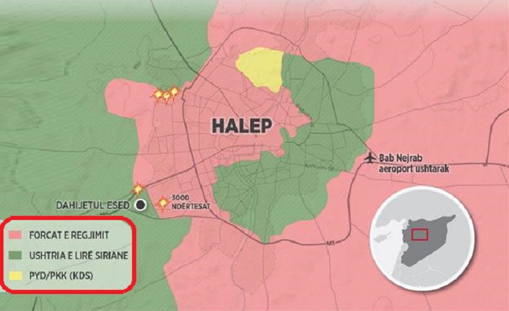 Vazhdon operacioni që opozitarët nisën ditën e premte për të thyer rrethimin e regjimit në lindje të qendrës së Halepit, në veri të Sirisë. Opozitarët të cilët veprojnë nën çatinë “Ushtria Fetih e Halepit” sulmojnë intensivisht vijën e regjimit nga jashtë rajonit të rrethuar.