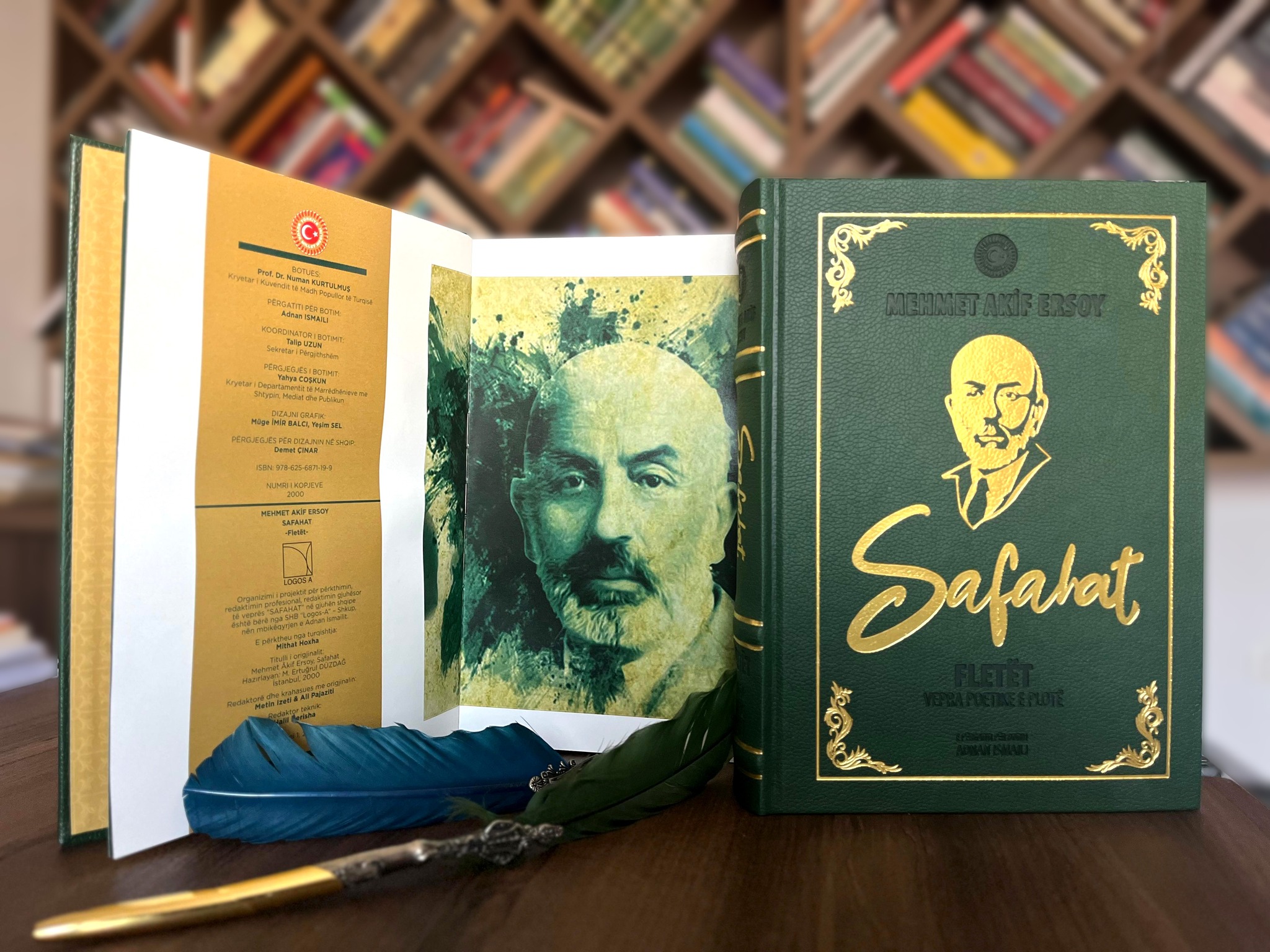 Kësaj radhe për ta njohur më për së afërmi veprimtarinë e tij prej shkrimtari dhe poeti, Kuvendi i Madh Popullor i Republikës së Turqisë, në krye me kryetarin e saj prof. dr. Numan Kurtulmush, lexuesit shqiptar ia sjell veprën poetike të Mehmet Akif Pejanit 𝙎𝒂𝙛𝒂𝙝𝒂𝙩 – 𝙁𝒍𝙚𝒕𝙚̈𝒕. Kjo paraqet nder dhe respekt që ky Kuvend ia bën kombit dhe kulturës shqiptare.