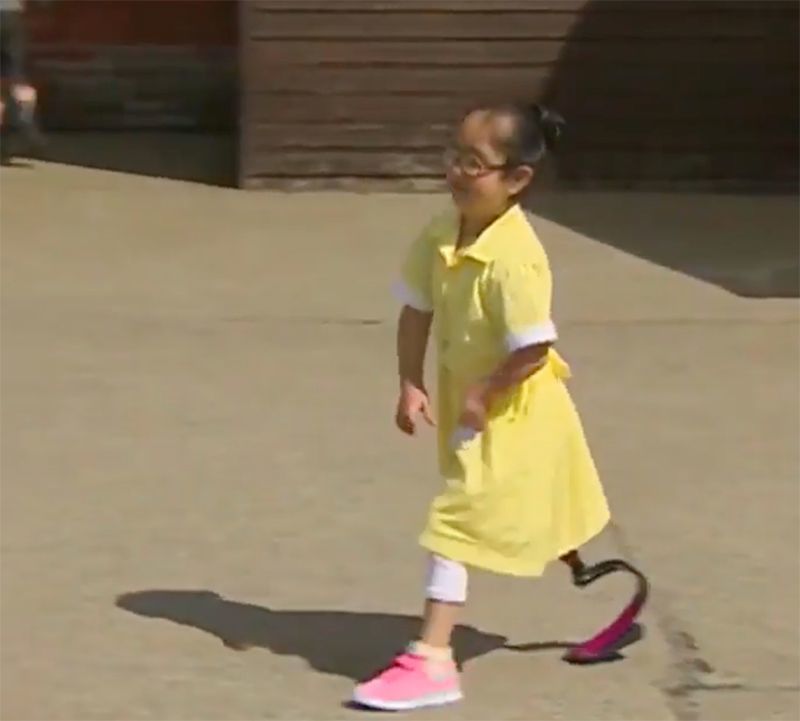 Një vajzë 7 vjecare ja befasuar shoqet e saj të shkollës kur u paraqit me këmbën e saj prostetike.