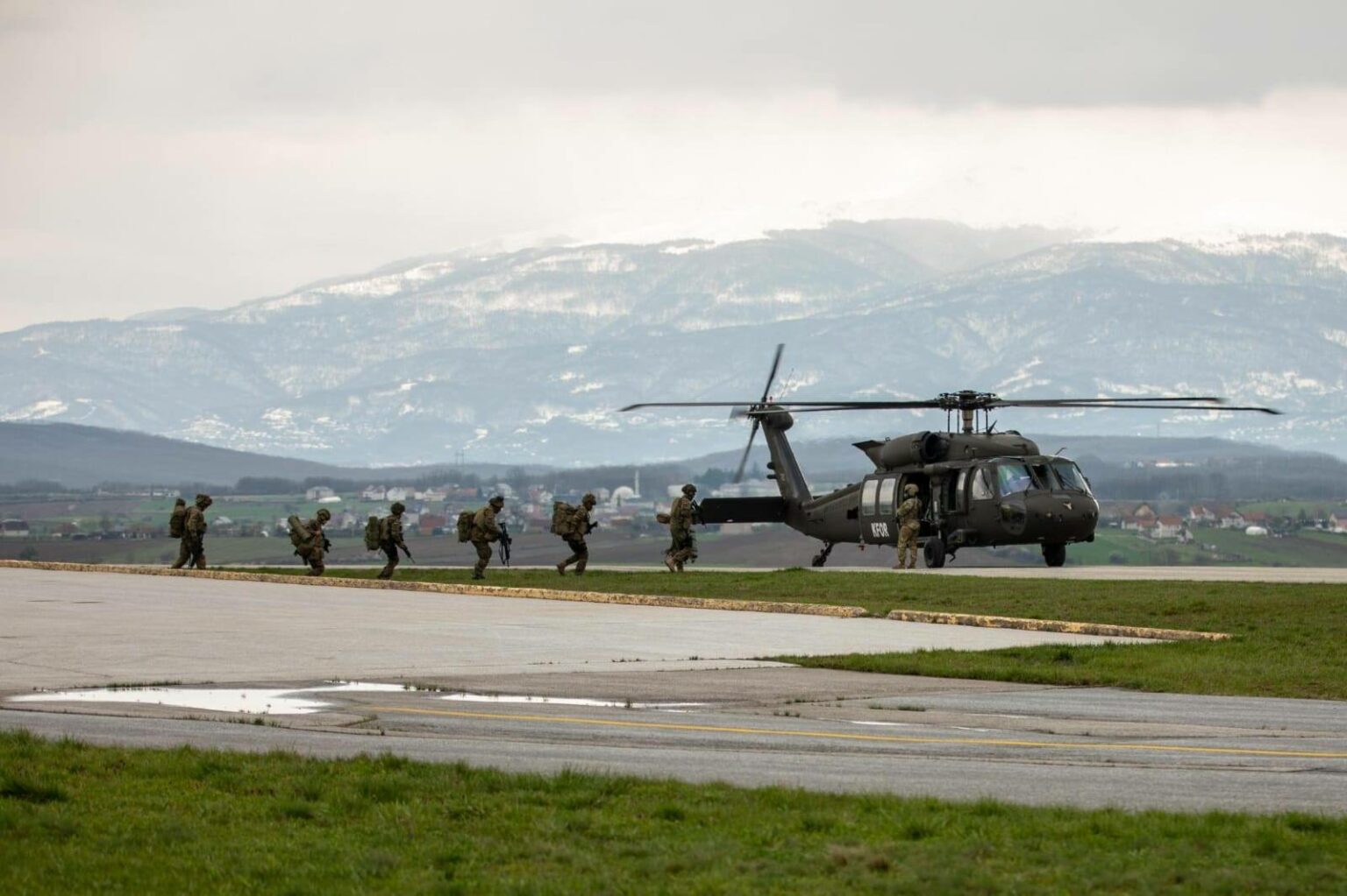 Ushtarët e SHBA-së dhe Letonisë, të caktuar në Komandën Rajonale në Lindje të misionit të KFOR-it, së fundmi u bashkuan për stërvitjen e operacioneve të ngarkesës me hobe ditën dhe natën.