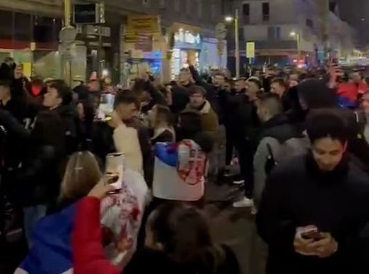 Një grup i madh tifozësh serbë kanë dalë në rrugë pas ndeshjes dhe kanë filluar me thirrje nacionaliste, për të vazhduar më pas me sloganet e dhe koret e fyerjet kundër shqiptarëve.