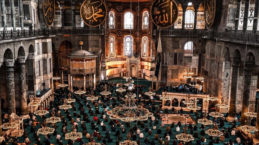Namazi i xhumasë së parë të muajit Ramazan në Xhaminë e Madhe Ajasofja (Ayasofya-i Kebir Cami-i Şerifi) u fal duke marrë masat kundër koronavirusit të ri (COVID-19), raporton Anadolu Agency (AA).