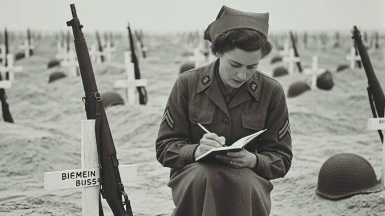 Një imazh po shpërndahet shumë në rrjetet sociale, ku pretendohet se tregon një infermiere nga forcat Aleate gjatë Luftës së Dytë Botërore, e cila po regjistron emrat e ushtarëve që vdiqën gjatë zbarkimeve në Normandi, Francë.