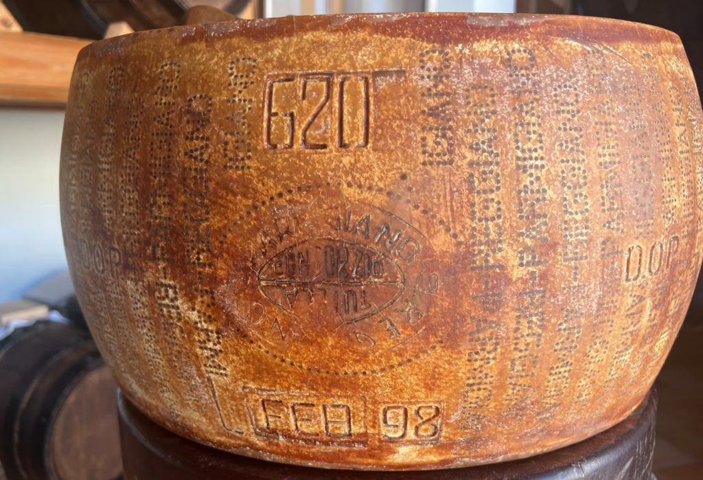 Kjo rrotë djathi, e cila është ende e konsumueshme, është prodhuar në vitin 1998 nga Romano dhe Silvia Camorani në qumështoren e tyre në Poviglio, një qytet i vogël pranë Parmës në rajonin Emilia-Romagna në veri të Italisë.