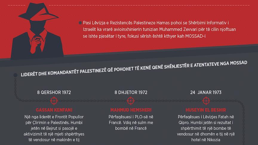 Anadolu Agency (AA) ka nxjerrë listën e liderëve dhe komandantëve palestinezë për të cilët thuhet se kanë qenë shënjestër e atentateve nga ana e MOSSAD-it në rajone të ndryshme. Megjithëse Izraeli nuk ka marrë përsipër haptazi shumicën e këtyre atentateve, gjetjet çojnë kah ajo.